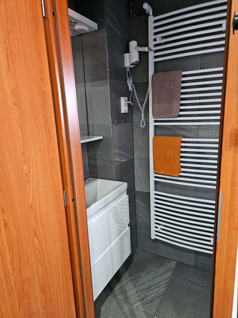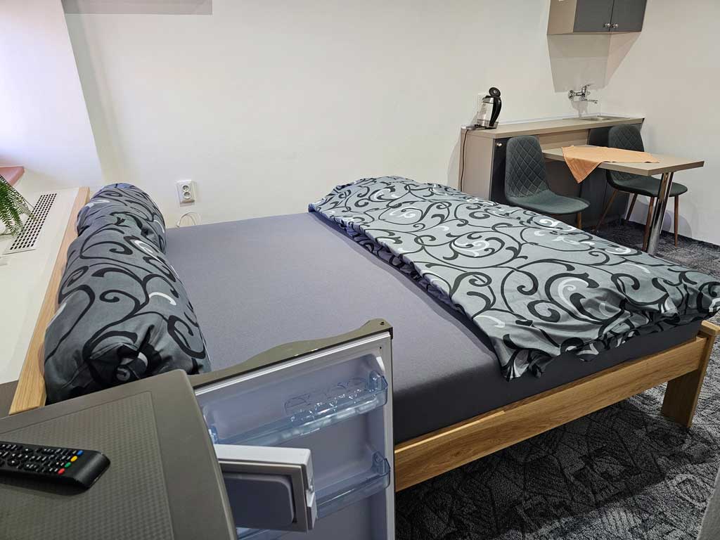 Pokoj číslo čtrnáct je nově zrekonstruovaný dvoulůžkový pokoj mini s manželskou postelí, sociálním zařízením a sprchou. Pokoj, který jsme do roku 2025 nenabízeli se nachází v druhem patře a je situován na stranu do parku. Má pokrytí Wi-Fi zdarma. Nabídne Vám soukromí pro chvíle strávené v Rožnově pod Radhoštěm a jeho okolí. Je plně vybaven, včetně varné konvice, ledničky, fénu, s možnosti zapůjčení televize dle Vašeho přání.