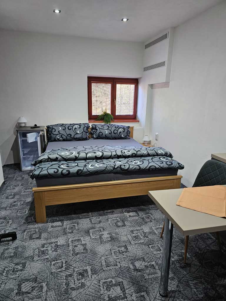 Pokoj číslo čtrnáct je nově zrekonstruovaný dvoulůžkový pokoj mini s manželskou postelí, sociálním zařízením a sprchou. Pokoj, který jsme do roku 2025 nenabízeli se nachází v druhem patře a je situován na stranu do parku. Má pokrytí Wi-Fi zdarma. Nabídne Vám soukromí pro chvíle strávené v Rožnově pod Radhoštěm a jeho okolí. Je plně vybaven, včetně varné konvice, ledničky, fénu, s možnosti zapůjčení televize dle Vašeho přání.